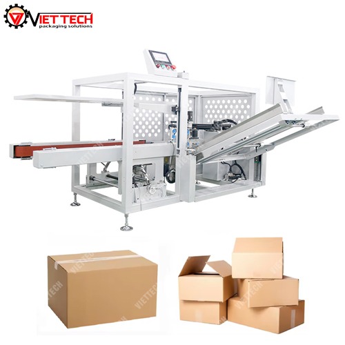 Bạn đang tìm kiếm giải pháp nâng cao hiệu quả và độ chính xác trong quy trình đóng gói? VIETTECH tự hào giới thiệu dòng máy mở thùng và dán đáy thùng carton hoàn toàn tự động, tích hợp công nghệ cánh tay robot tiên tiến!